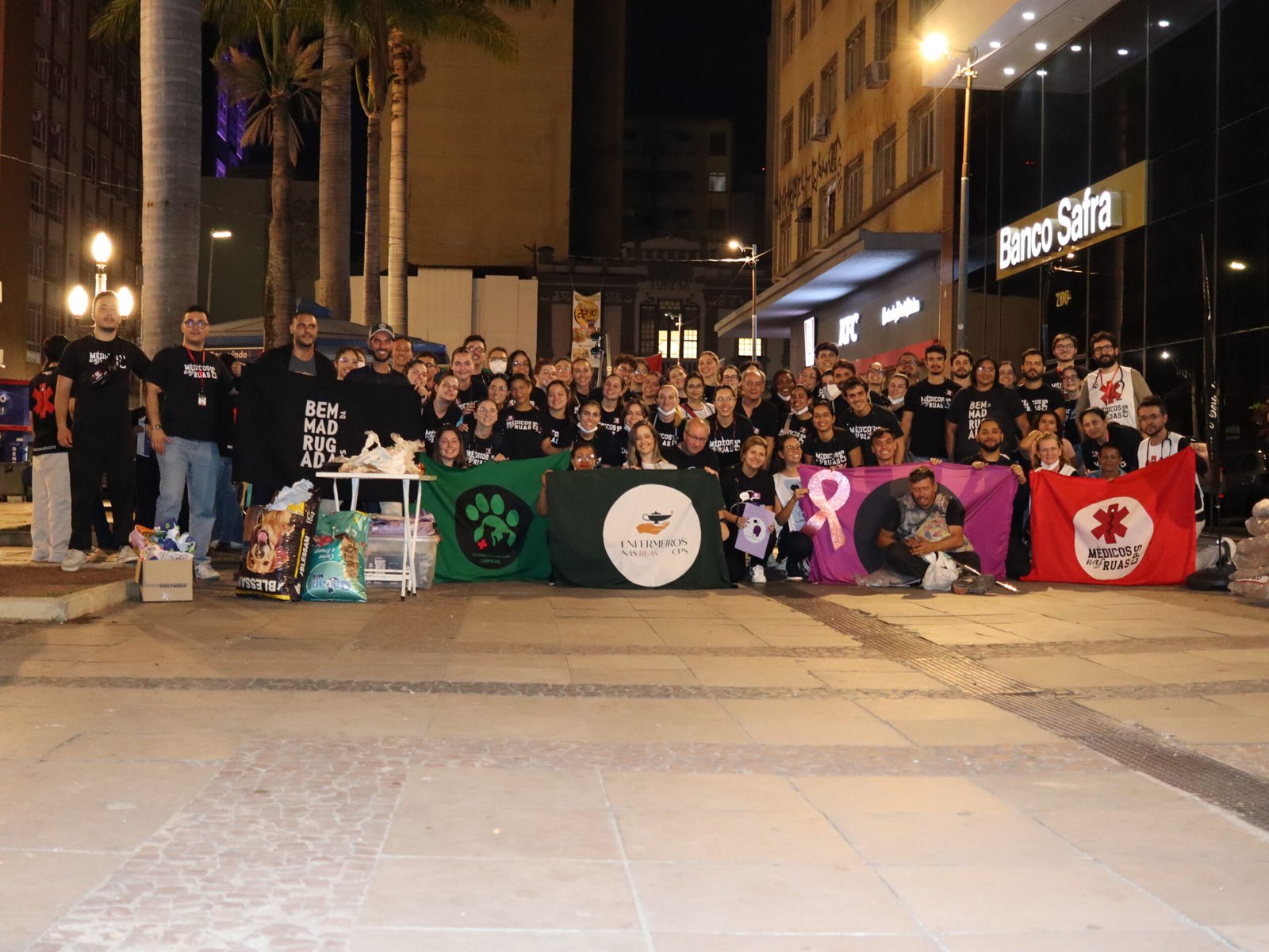 O Projeto é totalmente colaborativo, desde a arrecadação, logística, armazenagem dos itens, local de triagem, bastidores de coordenação, preparação até o momento de irmos às ruas.